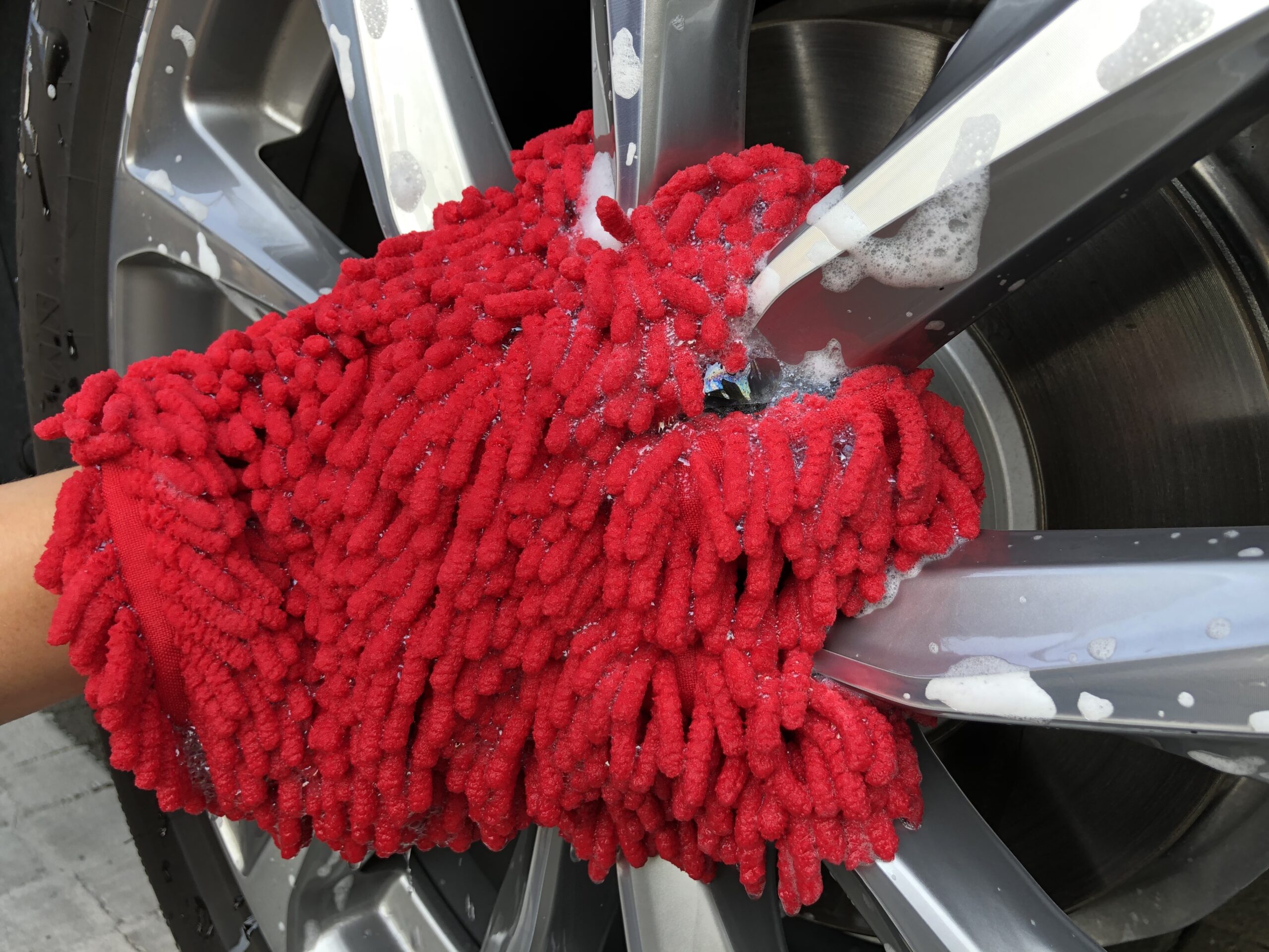 • This 5 Fingers Microfiber Chenille Wash Mitt can be used wet or dry on virtually any surface of the car interior and exterior. They’re soft, versatile cleaning accessories to more easily clean the hard-to-reach areas on a wheel – such as the backside of spokes, behind the brake rotor shield, the barrel, the brake caliper, and other intricate areas like the air-inlet grille.
