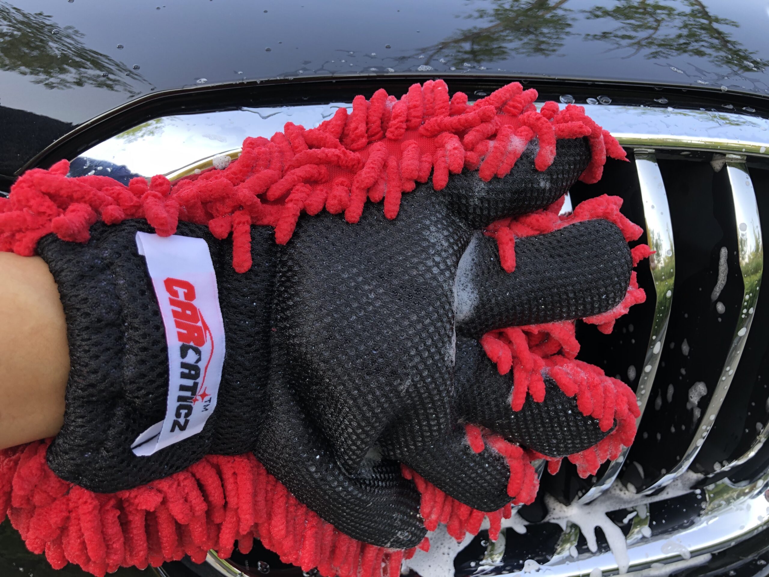 • The 5 Fingers design of the Microfiber Chenille Wash Mitt helps you get in tough to reach and clean areas and you can easily rinse clean between each wheel. The best application for this car wash mitt is on the wheels and an air-inlet grille. It can also be used to remove bugs and residues from the exterior of your car on the scrubber side or to dust the inside on the mini chenille side.
